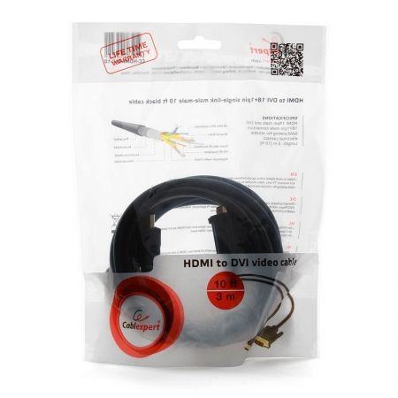 Кабель HDMI - DVI, 3.0 м, черный, позол. разъемы, Cablexpert (CC-HDMI-DVI-10)