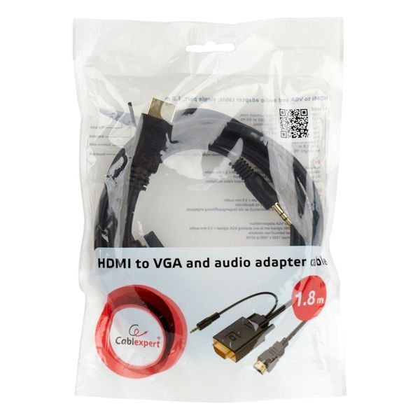 Кабель-адаптер Cablexpert предназначен для подключения VGA монитора/проектора к HDMI-порту. Преобразует цифровой HDMI сигнал в VGA и стерео аудио. Поддерживает разрешение изображения до 1920x1200 точек при 60 Гц и совместим с версией HDMI 1.4. Выходное разрешение видео не ухудшается относительно входного. Не требует внешнего питания.