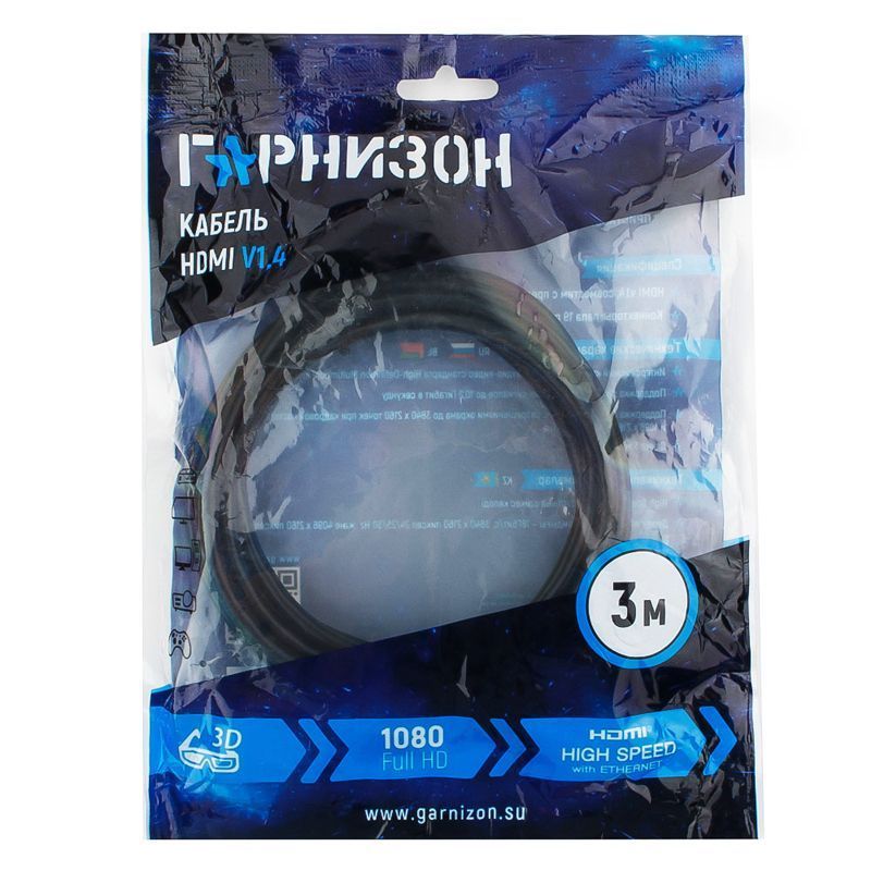 Кабель Гарнизон предназначен для подключения аудио и видео устройств с интерфейсом HDMI. Поддерживает технологию реверсивного звукового канала (ARC), сетевой интерфейс Ethernet 100 Мбит/сек (HEC), 3D, Full HD и 4К-изображения. Позволяет передавать цифровые видеоданные высокого разрешения и многоканальные цифровые аудиосигналы с защитой от копирования. Кабель имеет экранирование и позолоченные контакты, обеспечивающие надежное соединение и стабильную передачу сигнала без помех.