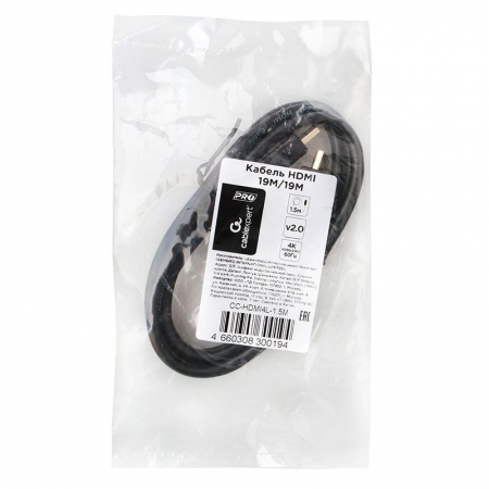 Кабель Cablexpert предназначен для подключения аудио и видео устройств с интерфейсом HDMI. Поддерживает разрешение 4K (60 Гц) и скорость передачи данных до 18 Гбит/c. Длина кабеля: 1.5 метра.