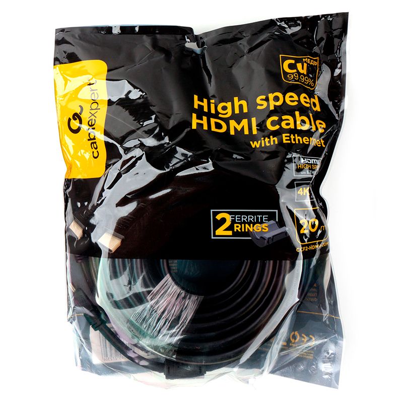 Кабель имеет позолоченные контакты и ферритовые фильтры, обеспечивающие