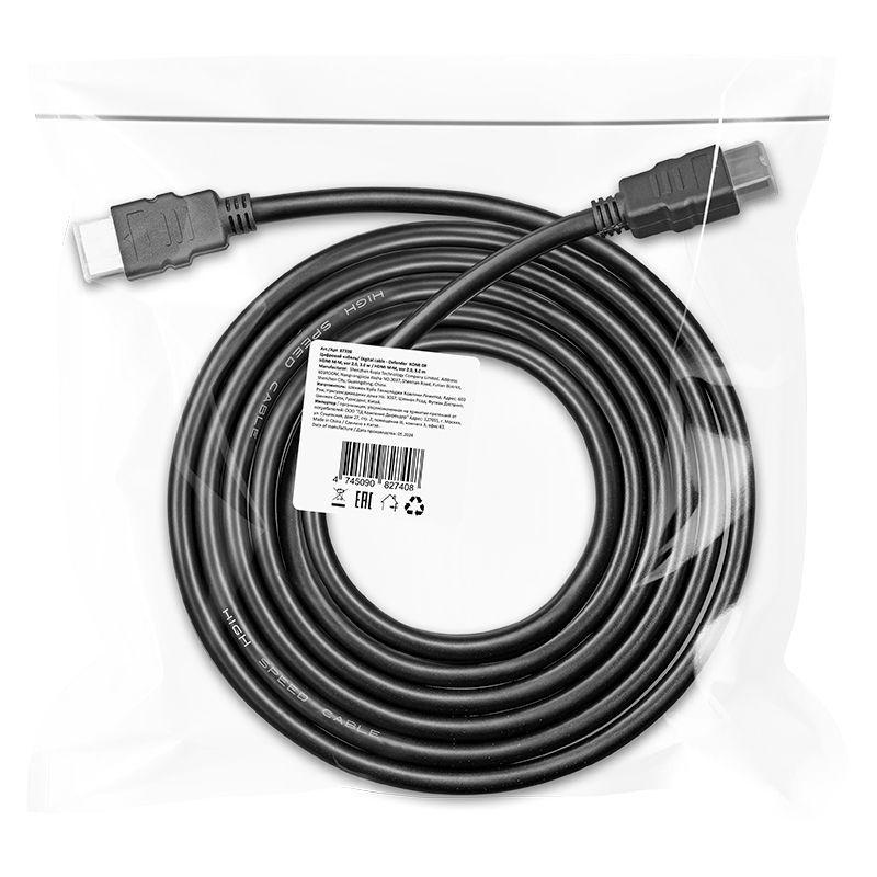 Производитель: Defender Наименование: HDMI-кабель Версия: 2.0 Максимальное разрешение: 4K 60 Гц Разъемы: HDMI 19M-19M 3D: Да HDMI Ethernet: Да Длина кабеля: 3 м Цвет: Черный