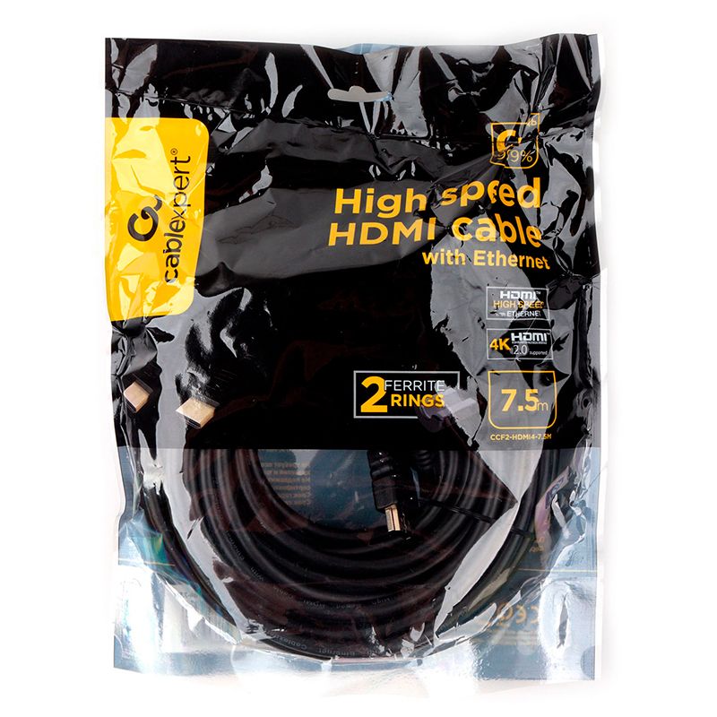 Кабель имеет позолоченные контакты и ферритовые фильтры, обеспечивающие