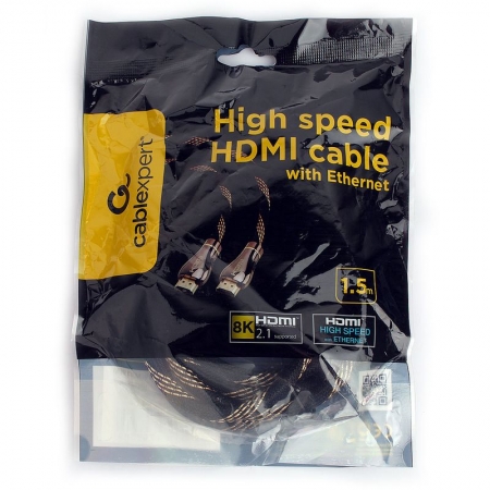 Производитель: Cablexpert Наименование: HDMI-кабель Стандарт HDMI: 2.1 Пропускная способность: До 48 Гбит/сек Поддерживаемые разрешения: до 4К при 120 Гц и 8К при 60 Гц Разъемы: HDMI 19M-19M Глубина передачи цвета: 16 бит на цвет Материал проводника: Медь Дополнительно: Армированная оплетка, металлические разъемы, позолоченные контакты 24К Длина кабеля: 1.5 м Цвет: Чёрный
