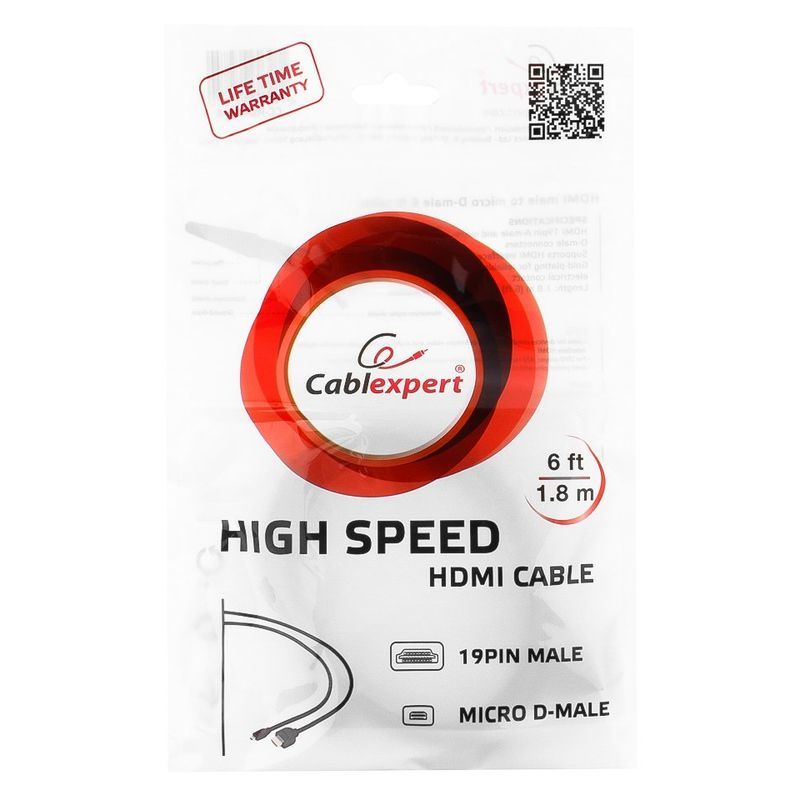 Кабель HDMI micro - HDMI 19M/micro D, 1.8 м, черный, позол., Cablexpert (CC-HDMID-6)