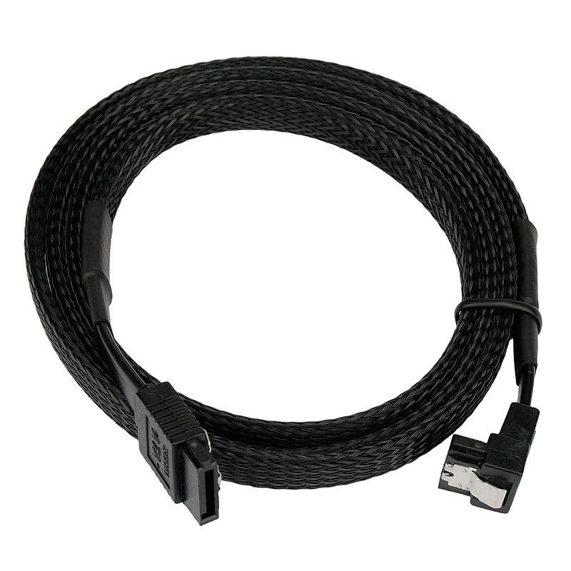 Кабель SATA в оплетке используется для подключения устройств (жесткие диски, накопители, приводы) с интерфейсом SATA III/II к контроллеру на материнской плате или плате расширения компьютера. Угловая форма коннектора обеспечивает удобство подключения в местах с ограниченным пространством. Металлические защёлки на разъемах кабеля гарантируют надежное подключение и предотвращают смещение разъема.