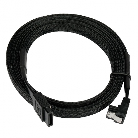 Кабель SATA в оплетке используется для подключения устройств (жесткие диски, накопители, приводы) с интерфейсом SATA III/II к контроллеру на материнской плате или плате расширения компьютера. Угловая форма коннектора обеспечивает удобство подключения в местах с ограниченным пространством. Металлические защёлки на разъемах кабеля гарантируют надежное подключение и предотвращают смещение разъема. Технические характеристики