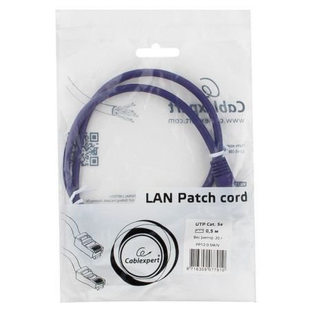 Производитель: Cablexpert Наименование: Патч-корд Тип кабеля: UTP, 4 пары Категория: 5е Разъемы: RJ-45 x 2 Материал проводника: Омеднённый алюминий (CCA) Контакты: позолоченные 50 микродюймов Диаметр проводника: 26AWG Материал оболочки: ПВХ Длина: 50 см Цвет: Фиолетовый