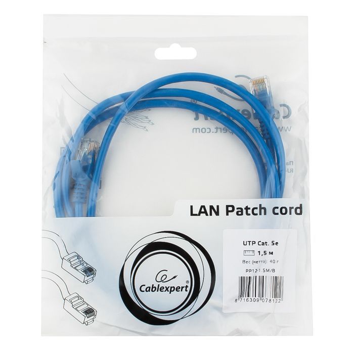 Патч-корд UTP 5е категории Cablexpert предназначен для подключения