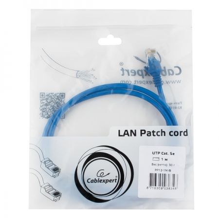 Производитель: Cablexpert Наименование: Кабель патч-корд UTP Тип кабеля: UTP, 4 пары Категория: 5е Разъемы: RJ-45 x 2 Материал проводника: Омеднённый алюминий (CCA) Контакты: позолоченные 50 микродюймов Диаметр проводника: 26AWG Материал оболочки: ПВХ Длина: 1 м Цвет: Синий