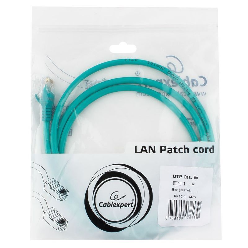 Производитель: Cablexpert Наименование: Кабель патч-корд UTP Тип кабеля: UTP, 4 пары Категория: 5е Разъемы: RJ-45 x 2 Материал проводника: Омеднённый алюминий (CCA) Контакты: позолоченные 50 микродюймов Диаметр проводника: 26AWG Материал оболочки: ПВХ Длина: 1 м Цвет: Зеленый