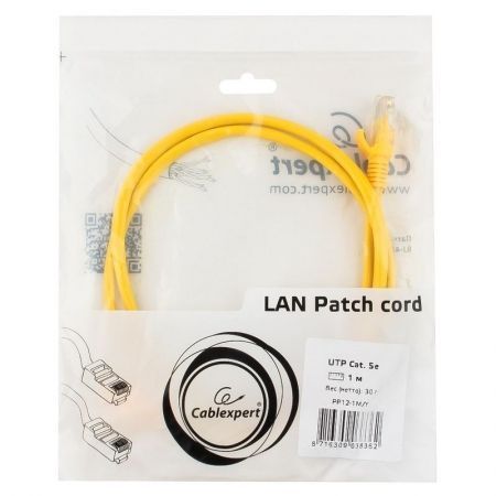 Производитель: Cablexpert Наименование: Кабель патч-корд UTP Тип кабеля: UTP, 4 пары Категория: 5е Разъемы: RJ-45 x 2 Материал проводника: Омеднённый алюминий (CCA) Контакты: позолоченные 50 микродюймов Диаметр проводника: 26AWG Материал оболочки: ПВХ Длина: 1 м Цвет: Желтый