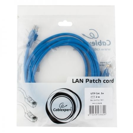 Производитель: Cablexpert Наименование: Кабель патч-корд UTP Тип кабеля: UTP, 4 пары Категория: 5е Разъемы: RJ-45 x 2 Материал проводника: Омеднённый алюминий (CCA) Контакты: позолоченные 50 микродюймов Диаметр проводника: 26AWG Материал оболочки: ПВХ Длина: 2 м Цвет: Синий