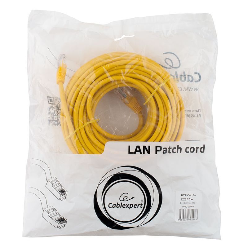 Производитель: Cablexpert Наименование: Патч-корд Тип кабеля: UTP, 4 пары Категория: 5е Разъемы: RJ-45 x 2 Материал проводника: Омеднённый алюминий (CCA) Контакты: позолоченные 50 микродюймов Диаметр проводника: 26AWG Материал оболочки: ПВХ Длина: 20 м Цвет: Желтый