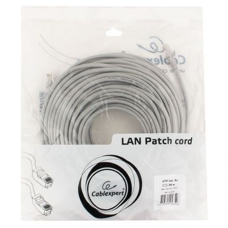 Производитель: Cablexpert Наименование: Патч-корд Тип кабеля: UTP, 4 пары Категория: 5е Разъемы: RJ-45 x 2 Материал проводника: Омеднённый алюминий (CCA) Контакты: позолоченные 50 микродюймов Диаметр проводника: 26AWG Материал оболочки: ПВХ Длина: 30 м Цвет: Серый