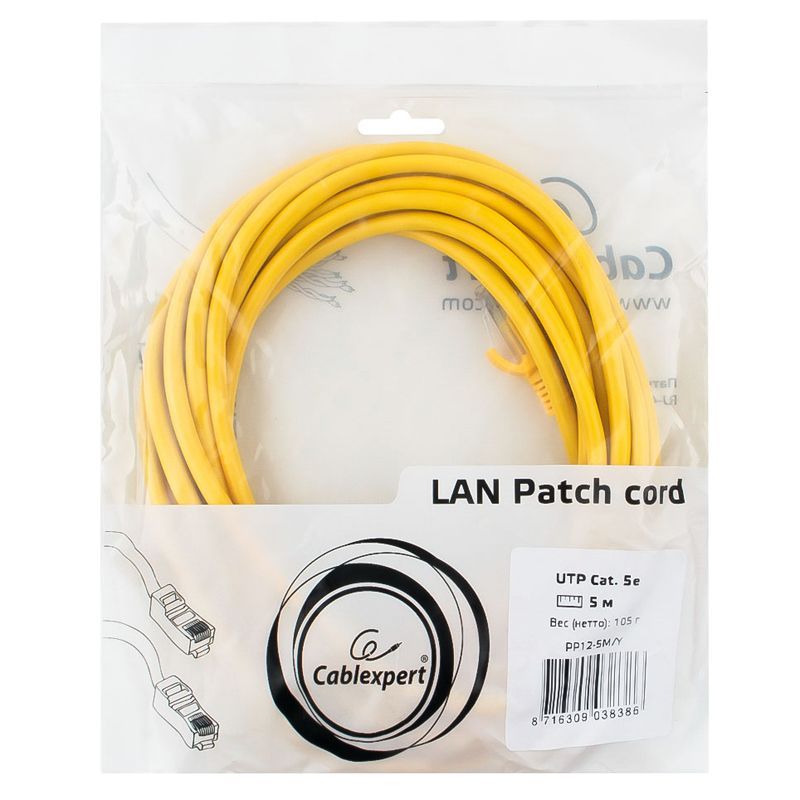 Производитель: Cablexpert Наименование: Кабель патч-корд UTP Тип кабеля: UTP, 4 пары Категория: 5е Разъемы: RJ-45 x 2 Материал проводника: Омеднённый алюминий (CCA) Контакты: позолоченные 50 микродюймов Диаметр проводника: 24AWG Материал оболочки: ПВХ Длина: 5 м Цвет: Желтый