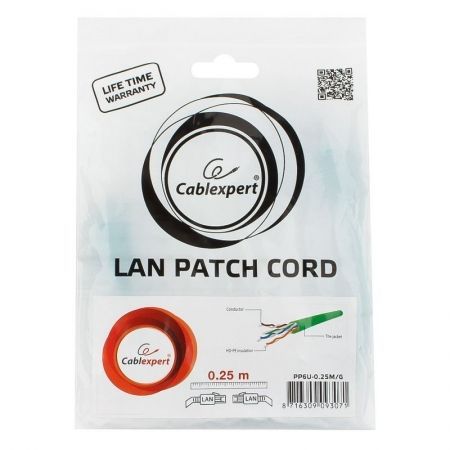 Патч-корд UTP 6 категории Cablexpert предназначен для подключения активного и пассивного сетевого оборудования, такого как компьютеры, офисные АТС, сетевые коммутаторы, концентраторы, коммутационные панели, маршрутизаторы, патч-панели в телекоммуникационных стойках, сетевые карты, а также другого оборудования, имеющего коннекторы RJ-45. Применяется в Fast Ethernet и Gigabit Ethernet сетях. Литые разъемы обеспечивают надежное крепление провода в коннекторе, а позолоченные контакты способствуют безупречной пропускной способности сигнала.