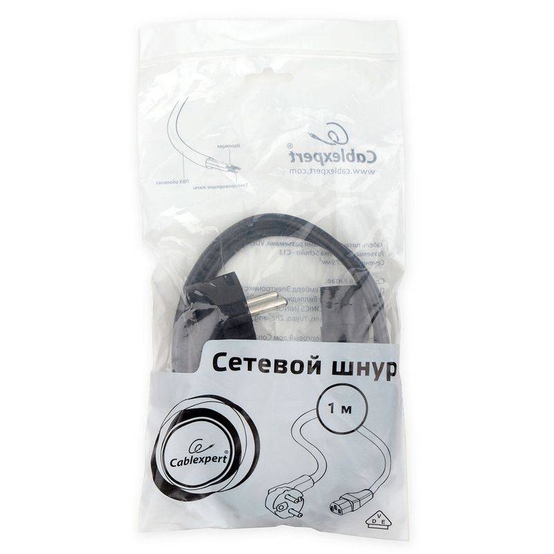 Производитель: Cablexpert Наименование: Кабель питания Разъемы: Schuko CEE 7/7 - IEC 320 C13 Провод: 3 х 0.75 кв.мм Сила тока: 10 А (макс.) Длина кабеля: 1 м Цвет: Черный