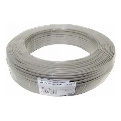 Кабель телефонный 100 м, 4 провода, CCS, плоский, серый