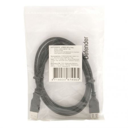 Производитель: Defender Наименование: USB-кабель Предназначение: Удлинитель кабеля Разъемы: USB Am-Af Интерфейс: USB 2.0 Скорость передачи данных: До 480 Мбит/сек Длина кабеля: 1.8 м Цвет: Черный