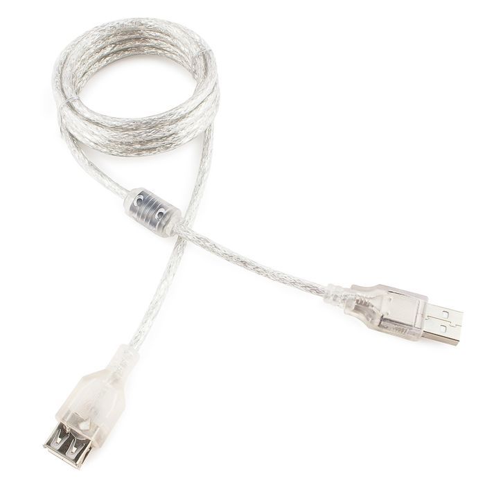 Производитель: Cablexpert Наименование: USB-кабель Разъемы: USB Am-Af Интерфейс: USB 2.0 Скорость передачи данных: До 480 Мбит/сек Дополнительно: Ферритовый фильтр, позолоченные контакты, экранированный Длина кабеля: 1.8 м Цвет: Прозрачный