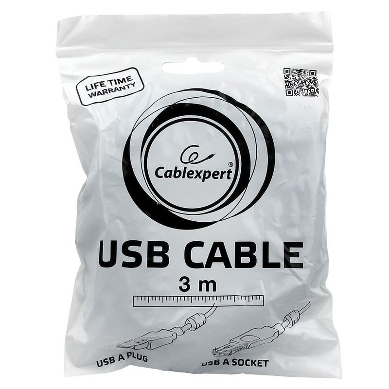 Соединительный кабель Cablexpert предназначен для облегчения доступа к USB порту компьютера или для удлинения USB кабеля. Поддерживает спецификацию USB 2.0, обеспечивающую скорость передачи данных до 480 Мбит/сек. Ферритовые фильтры и двойное экранирование (фольга +сетка) препятствуют возникновению помех и искажений при передаче сигнала. Литые разъемы гарантируют продолжительный срок службы кабеля.