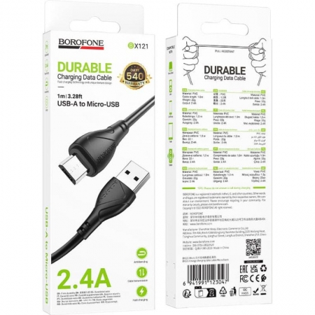 USB-кабель Borofone BX121 Energy используется для подключения мобильной техники с разъемом Micro USB к компьютеру или зарядному устройству. Позволяет осуществлять зарядку и передачу данных. Изготовлен из высококачественных материалов и имеет длину 1 метр. Максимальная сила тока 2.4А. Технические характеристики