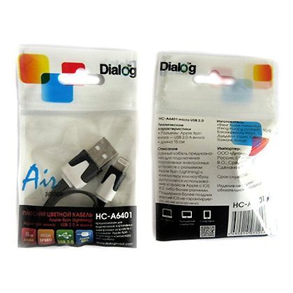 USB кабель Dialog предназначен для подключения портативной техники от Apple с разъемом Lighting к компьютеру или зарядному устройству. Кабель имеет плоскую форму и укороченную длину (0.15 метра), удобную для подключения к ноутбуку. Допускается использование устройств Apple с iOS 8.2 или более ранними. Поддержка более поздних версий iOS не гарантируется, но не исключена. Технические характеристики