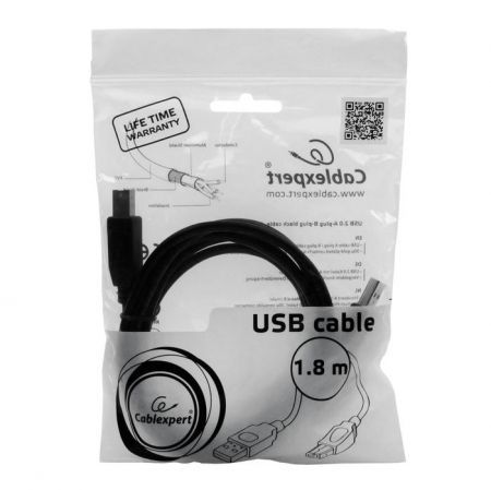 Производитель: Cablexpert Наименование: USB-кабель Разъемы: USB AM - BM Интерфейс: USB 2.0 Скорость передачи данных: до 480 Мбит/сек Максимальный ток: 2.4 А Материал проводников: Медь Толщина жил (передача данных / питание): 28 / 26 AWG Экранирование: Двойное (фольга + сетка) Длина кабеля: 1.8 м Цвет: Черный