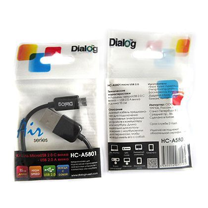 Производитель: Dialog Наименование: USB-кабель Разъемы: USB Am - microUSB Bm Длина кабеля: 0.15 м Цвет: Черный
