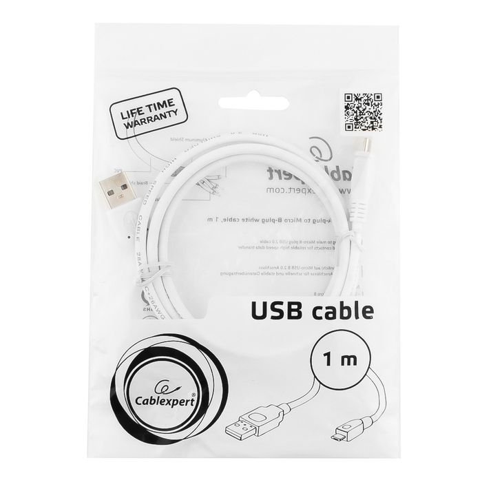 Кабель USB 2.0 Am=>micro B - 1.0 м, белый, Cablexpert Pro (CCP-mUSB2-AMBM-W-1M)