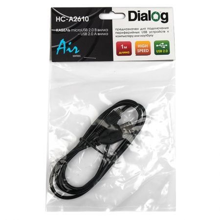 Производитель: Dialog Наименование: USB-кабель Предназначение: Зарядка, синхронизация, передача данных Интерфейс: USB 2.0 Пропускная способность: До 480 Мбит/сек Разъемы: USB A(m) - microUSB B(m) Длина кабеля: 1 м Цвет: Черный Размеры с упаковкой: 220 х 130 мм Вес: 22 г Вес с упаковкой: 30 г