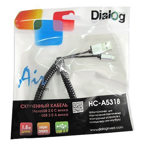 Производитель: Dialog Наименование: USB-кабель Интерфейс: USB 2.0 Разъемы: USB Am - micro USB Bm Длина кабеля: 1.8 м Цвет: Черный/серый