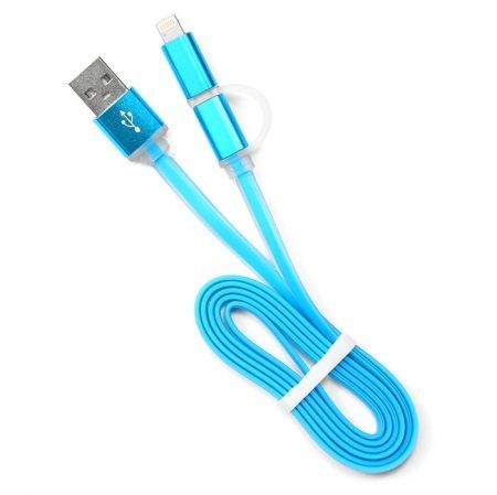 Производитель: Cablexpert Наименование: Универсальный USB-кабель Предназначение: Синхронизация, передача данных, подзарядка Совместимость: iPhone 6s / 6 / 5s / 5 / 5c / iPad Air / iPad mini / iPad Pro Разъемы: USB (Am) - microUSB (Bm) + переходник Lightning Интерфейс: USB 2.0 Длина кабеля: 1 м Материал: Алюминий + силикон Цвет: Голубой