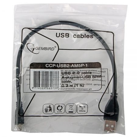 Производитель: Gembird/Cablexpert Наименование: Кабель USB Интерфейс: USB 2.0 Пропускная способность: до 480 Мбит/сек Разъемы: USB Am - mini Bm Особенности: Экранирование, позолоченные контакты 30 мкм Длина кабеля: 30 см Цвет: Черный