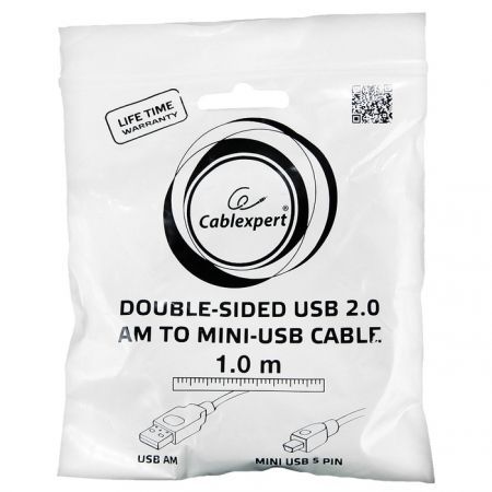 Кабель USB 2.0 Am=>mini B - 1.0 м, мультиразъем, черный, Cablexpert (CC-5PUSB2D-1M)