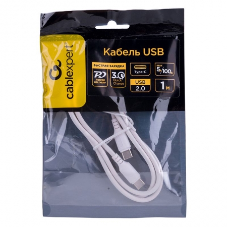Производитель: Cablexpert Наименование: USB-кабель Предназначение: Синхронизация, передача данных, подзарядка Интерфейс: USB 2.0 Пропускная способность интерфейса: до 480 Мбит/сек Максимальный ток: 5 А Максимальная мощность: 100 Вт Поддержка быстрой зарядки: PD / QC3.0 Разъемы: 2 x Type C (m) Материал проводников: Медь Толщина жил (передача данных / питание): 30 / 20 AWG Оболочка кабеля: Силикон Длина кабеля: 1 м Цвет: Белый