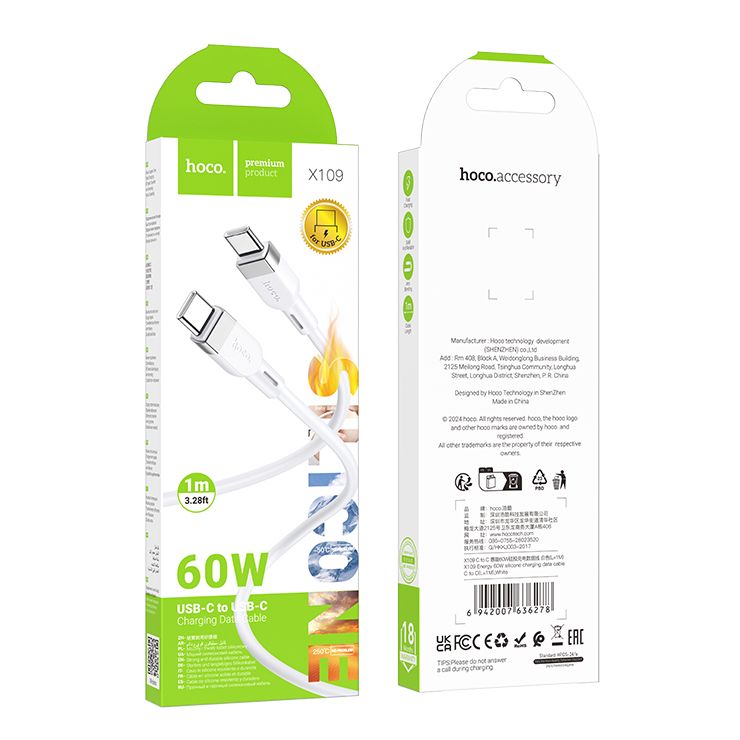 Производитель: Hoco Наименование: USB-кабель Предназначение: Синхронизация, передача данных, подзарядка Интерфейс: USB 2.0 Пропускная способность интерфейса: до 480 Мбит/сек Максимальный ток: 3 А Максимальная мощность: 60 Вт Поддержка быстрой зарядки: PD / QC3.0 Разъемы: Type C (m) - Type C (m) Оболочка кабеля: Силикон Длина кабеля: 1 м Цвет: Белый