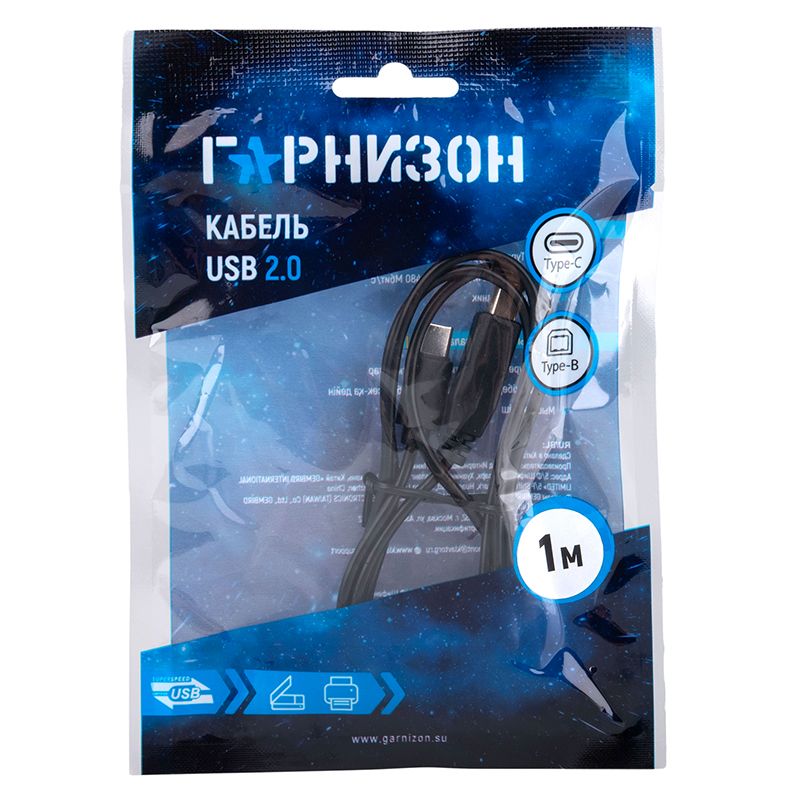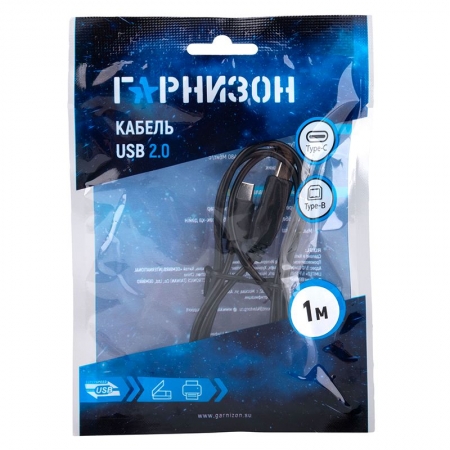 Производитель: Гарнизон Наименование: USB-кабель Предназначение: Подключение периферийных устройств к ПК Интерфейс: USB 2.0 Скорость передачи данных: До 480 Мбит/сек Разъемы: USB Type CM - BM Материал проводника: Медь Длина кабеля: 1 м Цвет: Черный