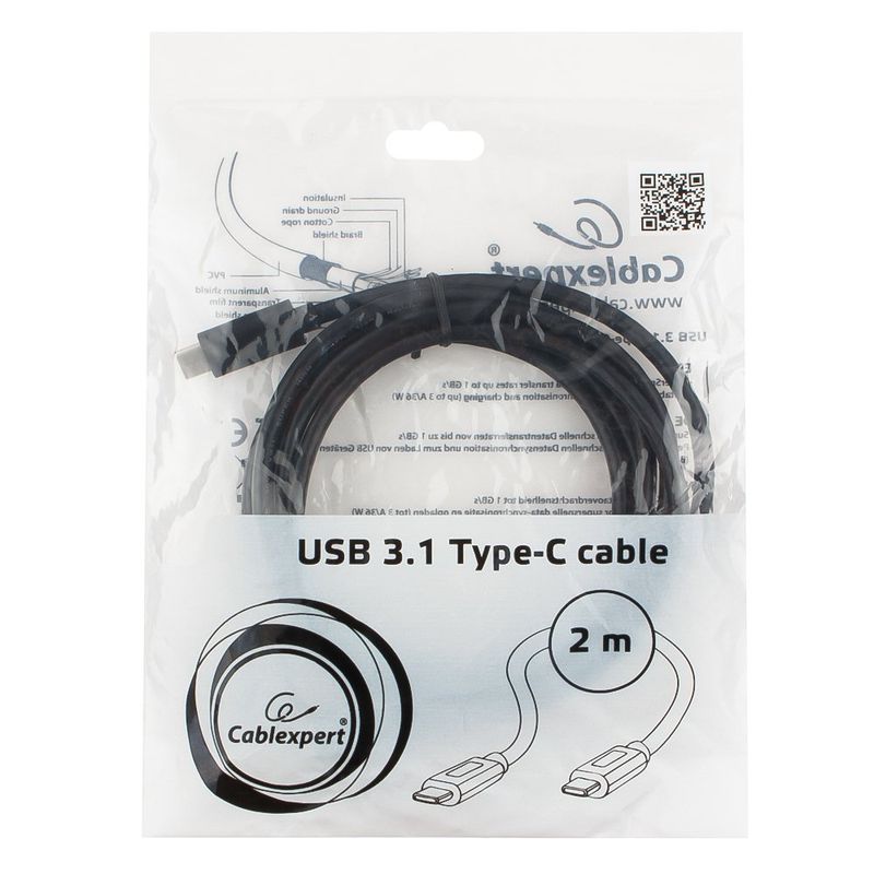 Производитель: Cablexpert Наименование: USB-кабель Предназначение: Синхронизация, передача данных, подзарядка Интерфейс: USB 3.1 (совместим с USB 3.0/2.0) Пропускная способность интерфейса: до 10 Гбит/сек Максимальный ток: 3 А Максимальная мощность: 36 Вт Поддержка быстрой зарядки: PD / QC3.0 Разъемы: 2 x Type C (m) Материал проводников: Медь Толщина жил (передача данных / питание): 28 / 26 AWG Экранирование: двойное (фольга + сетка) Длина кабеля: 2 м Цвет: Чёрный Упаковка: Пакет