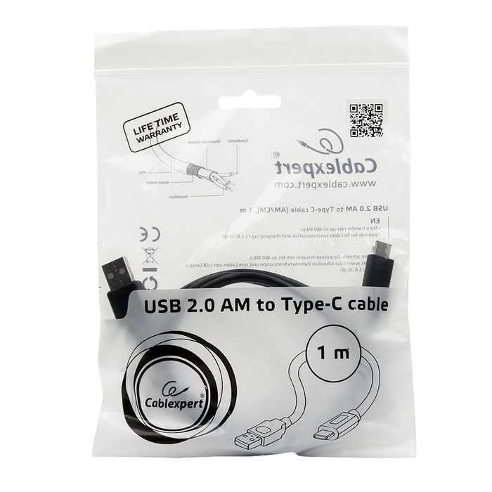 Производитель: Cablexpert Наименование: USB-кабель Предназначение: Синхронизация, передача данных, подзарядка Интерфейс: USB 2.0 Скорость передачи данных: До 480 Мбит/сек Разъемы: USB 2.0 A(m) - Type C(m) Дополнительно: Позолоченные контакты Длина кабеля: 1 м Цвет: Черный