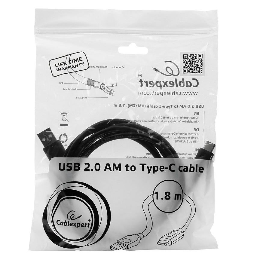 Производитель: Cablexpert Наименование: USB-кабель Предназначение: Синхронизация, передача данных, подзарядка Интерфейс: USB 2.0 Скорость передачи данных: До 480 Мбит/сек Разъемы: USB 2.0 A(m) - Type C(m) Дополнительно: Позолоченные контакты Длина кабеля: 1.8 м Цвет: Черный