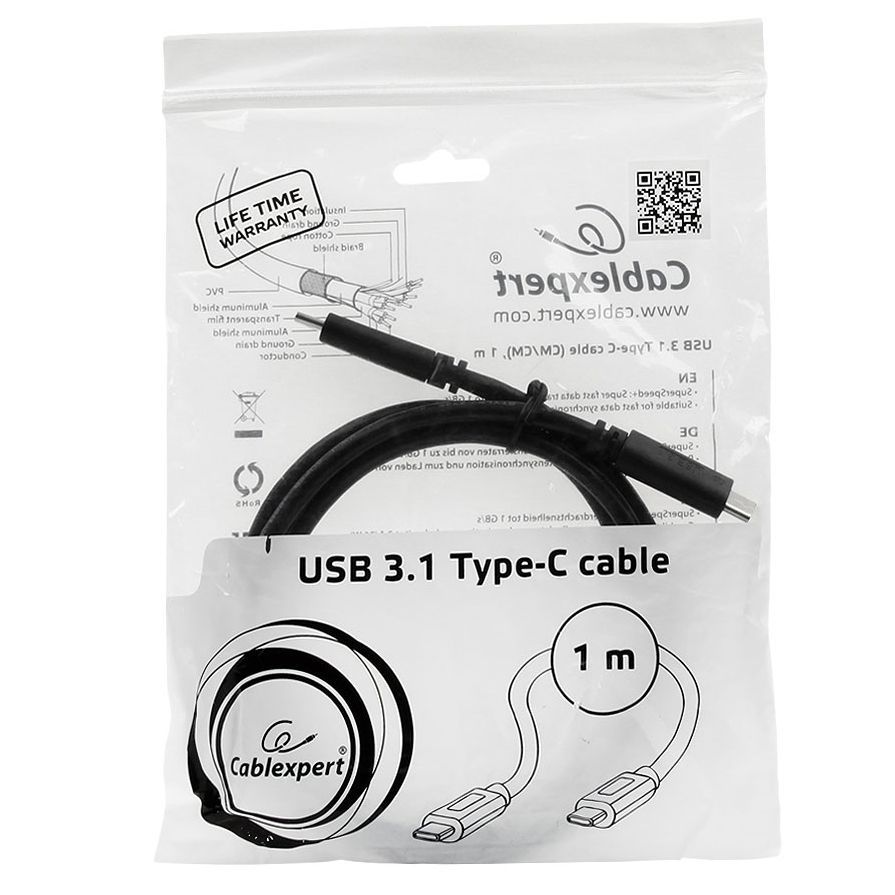 Производитель: Cablexpert Наименование: USB-кабель Предназначение: Синхронизация, передача данных, подзарядка Интерфейс: USB 3.1 (обратно совместим с USB 3.0/2.0) Пропускная способность интерфейса: до 10 Гбит/с Максимальный ток: 3 А/36 Вт Разъемы: USB 3.1 2 x Type C Дополнительно: Позолоченные контакты Длина кабеля: 1 м Цвет: Черный