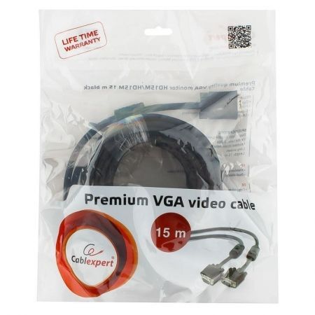 Производитель: Cablexpert Наименование: Кабель VGA Разъемы: HDDB15 (Male) - HDDB15 (Male) Особенности: Ферритовые фильтры, двойное экранирование Материал проводников: Медь Длина кабеля: 15 м Цвет: Чёрный