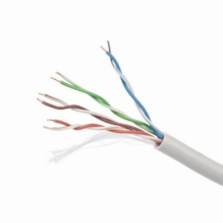 Неэкранированная витая пара UTP 5e, 4 пары, одножильный 0.48 мм, CCA. Длина кабеля 100 метров.
