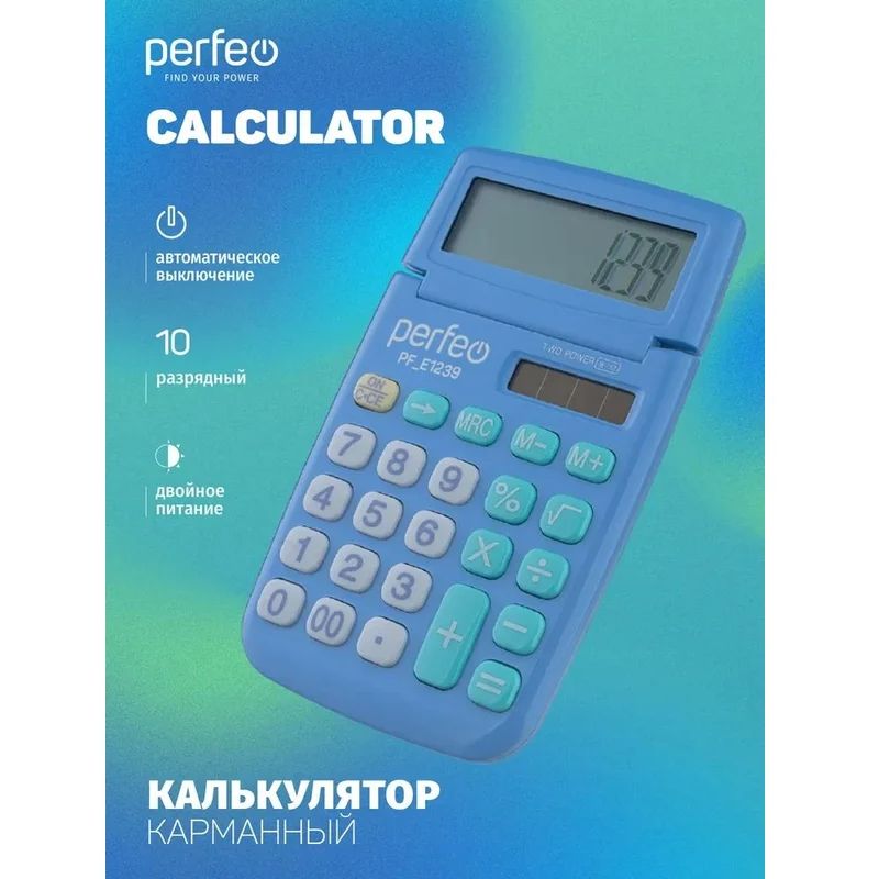 Калькулятор Perfeo PF_Е1239 будет Вам полезен в случаях, когда использование относительно громоздкого калькулятора неудобно или невозможно. В нем установлен 10-разрядный однострочный дисплей, информация с которого хорошо различима даже при ярком солнечном свете. Корпус очень компактен: его габаритные размеры составляют 119x75x13 мм. Вы сможете носить этот калькулятор даже в кармане. Оформление у данного устройства элегантное и понравится владельцам. У калькулятора двойное питание, которое он получает от устанавливаемой батарейки LR1130 или солнечного элемента. Такое совмещенное решение позволяет сэкономить заряд, увеличить автономность и пользоваться калькулятором в различных условиях. Среди функций: расчеты с процентами, сохранение значений в памяти, вычисление квадратного корня. Калькулятор простой, он рекомендован для рядовых пользователей, не нуждающихся в выполнении сложных вычислений.