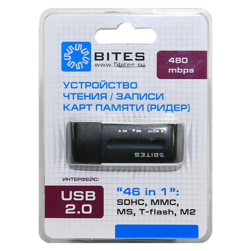 Миниатюрный мультиформатный картридер 5Bites RE2-102BK - идеальное