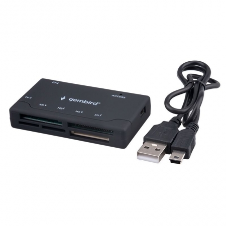 Производитель: Gembird Наименование: Внешний картридер Поддержка карт памяти: MicroSD, MicroSDHC, MicroSDXC, SD до 512 Гб; M2, MS до 32 Гб; xD до 1 Гб; CF до 512 Мб Кол-во слотов: 4 Интерфейс: USB 2.0 Скорость передачи данных: до 480 Мбит/сек Разъемы: Mini USB Материал корпуса: Пластик