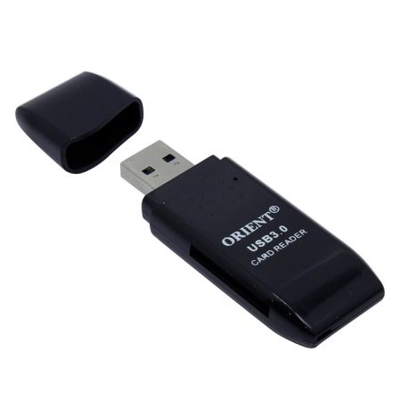 Компактный мультиформатный картридер Orient CR-017В используется для чтения/записи карт памяти форматов SD и mciroSD, в том числе высокоскоростных карт SDXC/SD 3.0 UHS-1. Поддерживает интерфейс USB 3.0, обеспечивающий скорость передачи данных до 5 Гбит/сек. Наличие USB-коннектора позволяет подключать картридер к компьютеру без использования переходников. Защитный колпачок предохраняет коннектор от повреждений, когда картридер не используется. С помощью входящего в комплект шнурка картридер можно носить с собой на связке ключей, и он всегда будет под рукой.