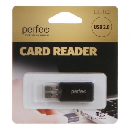 Карт-ридер внешний USB Perfeo PF-VI-R022 для microSD, черный (PF_С3790)